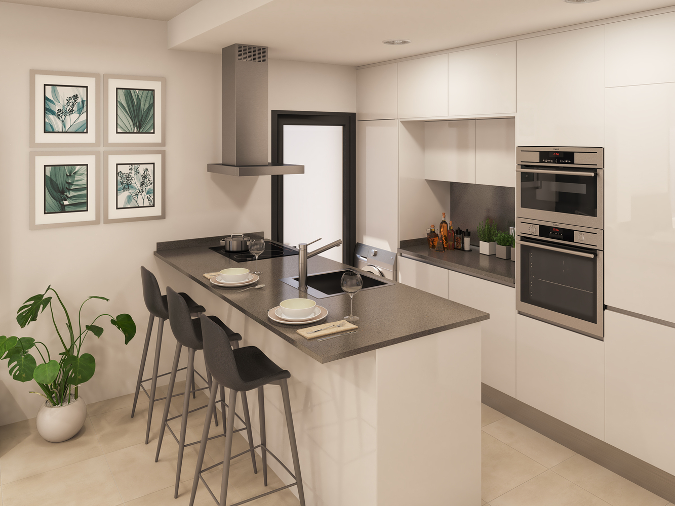 Deze verdieping appartementen met een woonoppervlak van 70 m2 zijn gebouwd om een mooie binnentuin met 2 zwembaden waarvan 1 verwarmd zwembad. De open keuken wordt opgeleverd inclusief keukenapparatuur. De woningen zijn voorzien van 2 slaapkamers en 2 badkamers waarvan 1 badkamer en suite. Het balkon/terras is 11 m2 en er is een 2e balkon aan de master bedroom van 3 m2. Elke woning is voorzien van een berging voor oa fietsen en een parkeerplaats voor de auto in de ondergrondse parkeergarage.